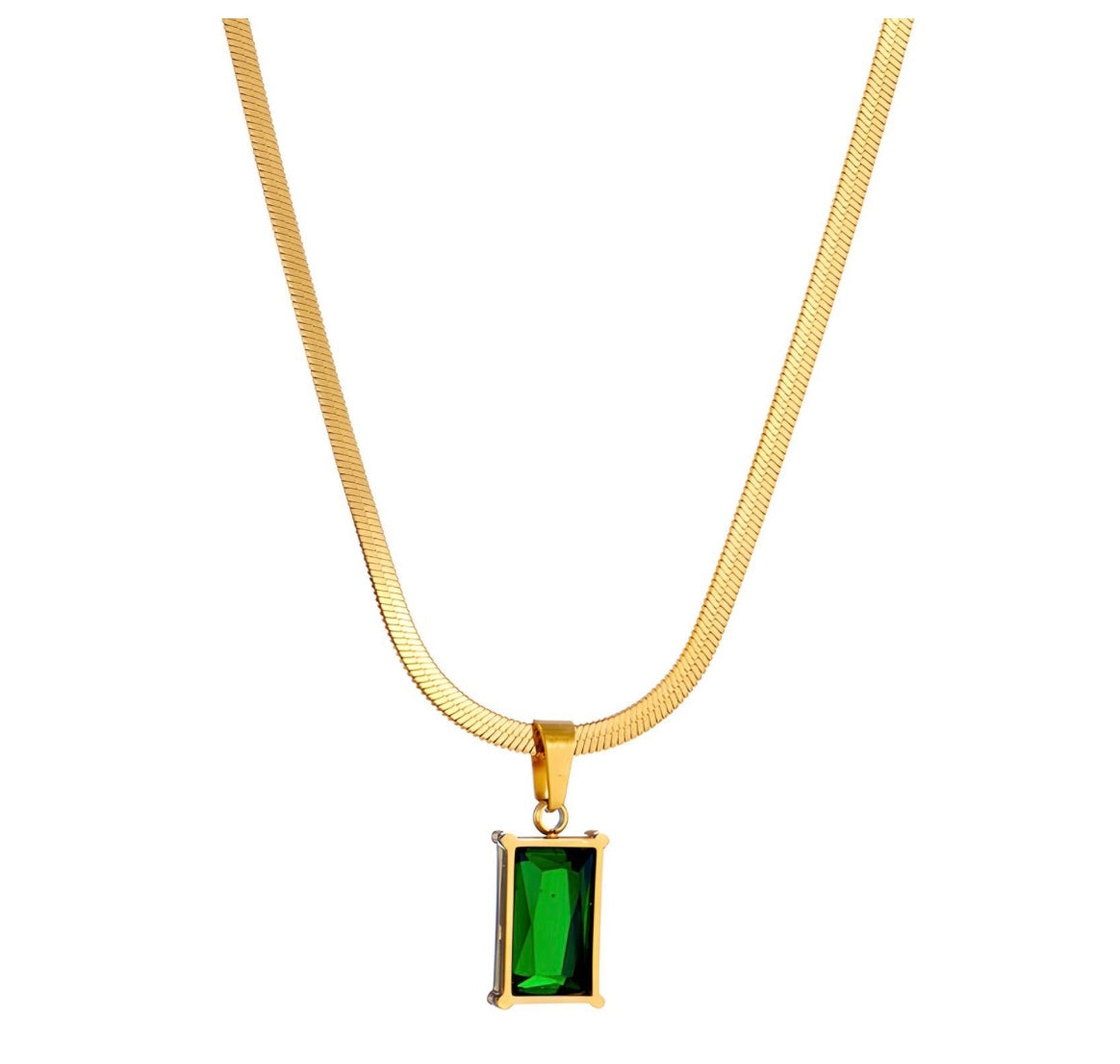 Stunning imitation emerald pendant necklace, stylish & elegant. 46+5 cm. Code 88349