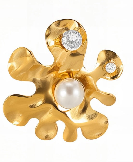 Stylish flower design earrings with imitation pearls & cubic zirconia. 2.5 x 2.2 cm. Code 90166