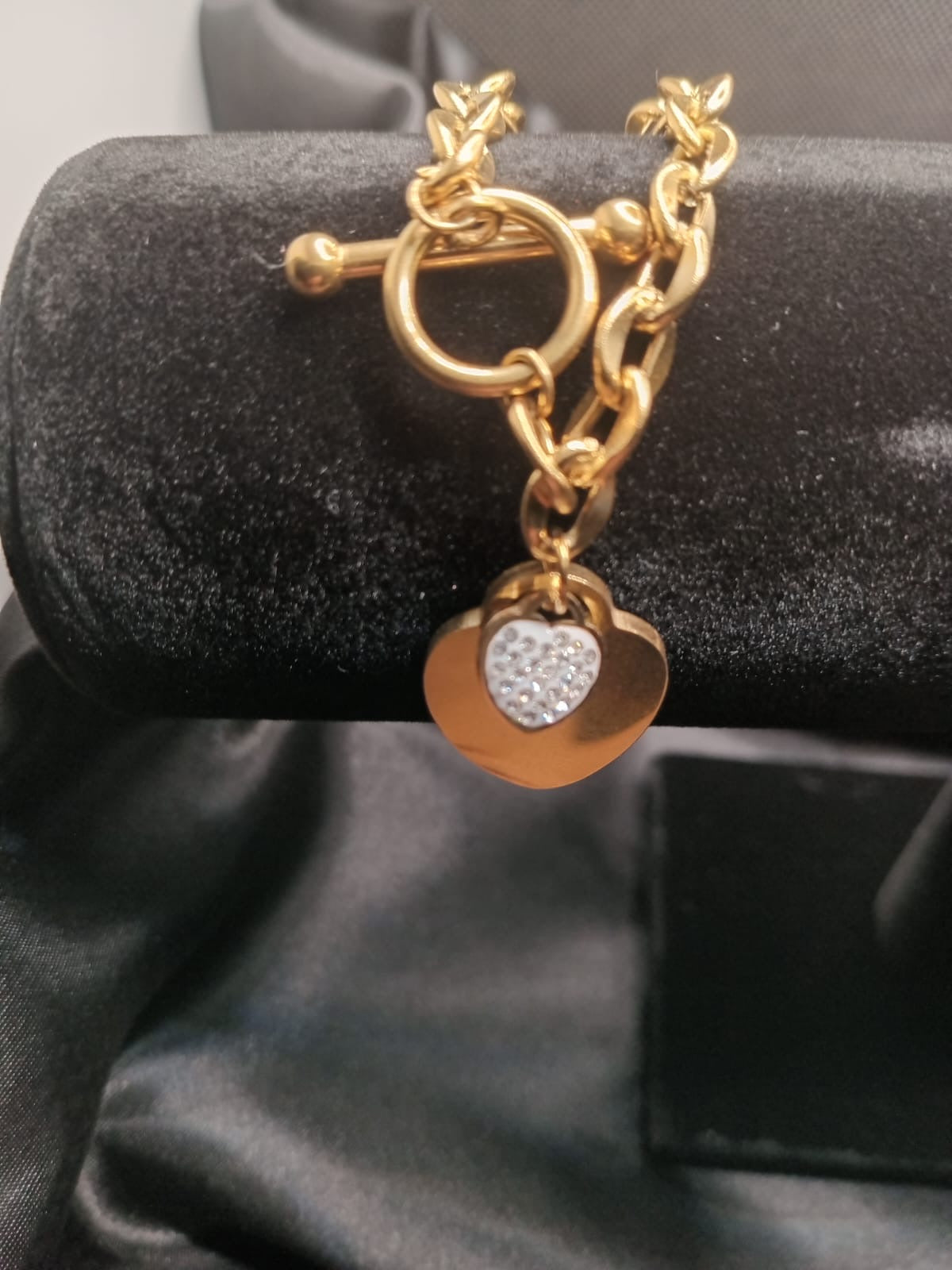 Stylish heart bracelet with large cubic zirconia stone 17cm.Code 87722